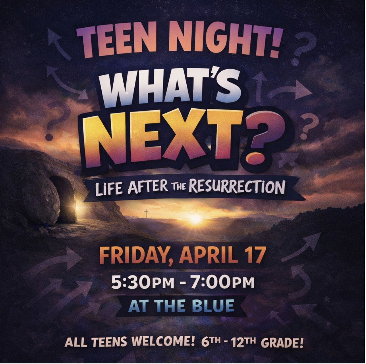 Friday, April 17th, Teen Night at the Blue, 5:30 pm
