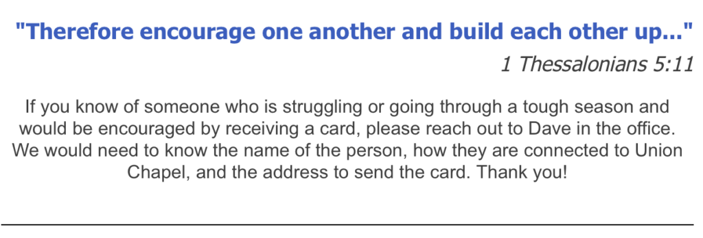 ANNOUNCEMENTS & EVENTS AT UNION CHAPEL UMC